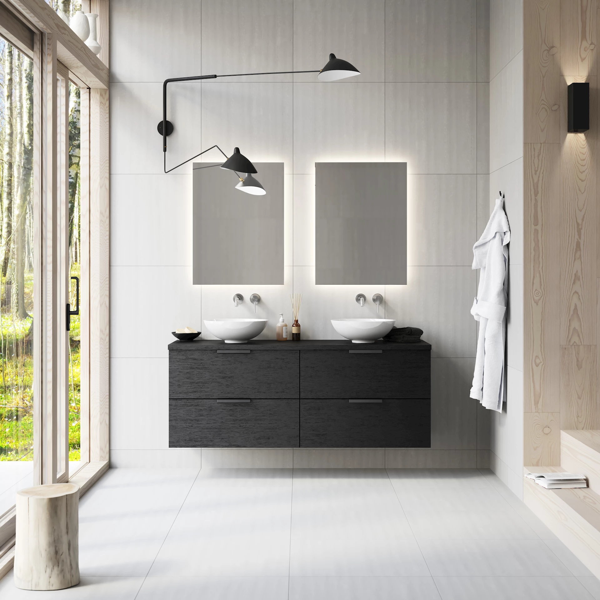 Variant er Fossbads største møbelserie og inneholder servantskap fra 60- til 180 cm bredde, og en rekke tilhørende møbler som speilskap, høyskap, høyt sideskap, kommoder, og veggkassett. Serien er delt i tre ulike dybder 40-46-48. Velg mellom mineral- eller porselensservant. Spesialtilpasning etter mål på bestilling.